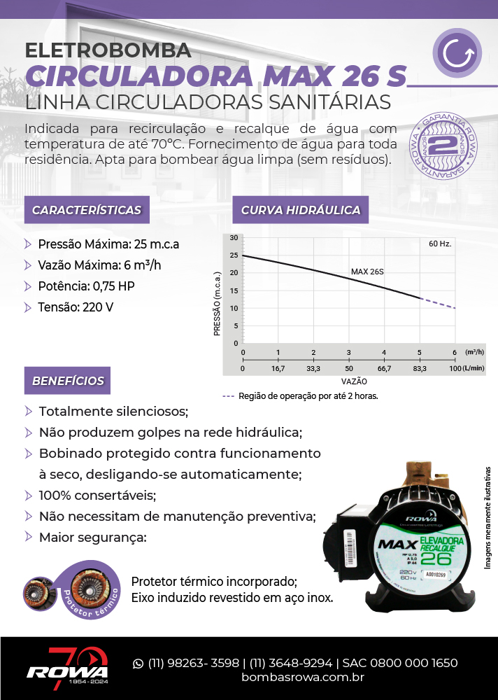 As bombas circuladoras da Rowa do Brasil são ideais para sistemas de recirculação e recalque de água fria e quente, com temperatura de até 70ºC. São compatíveis com centrais térmicas, sistemas de aquecimento solar e gás, e projetadas para o fornecimento eficiente de água em toda a residência.