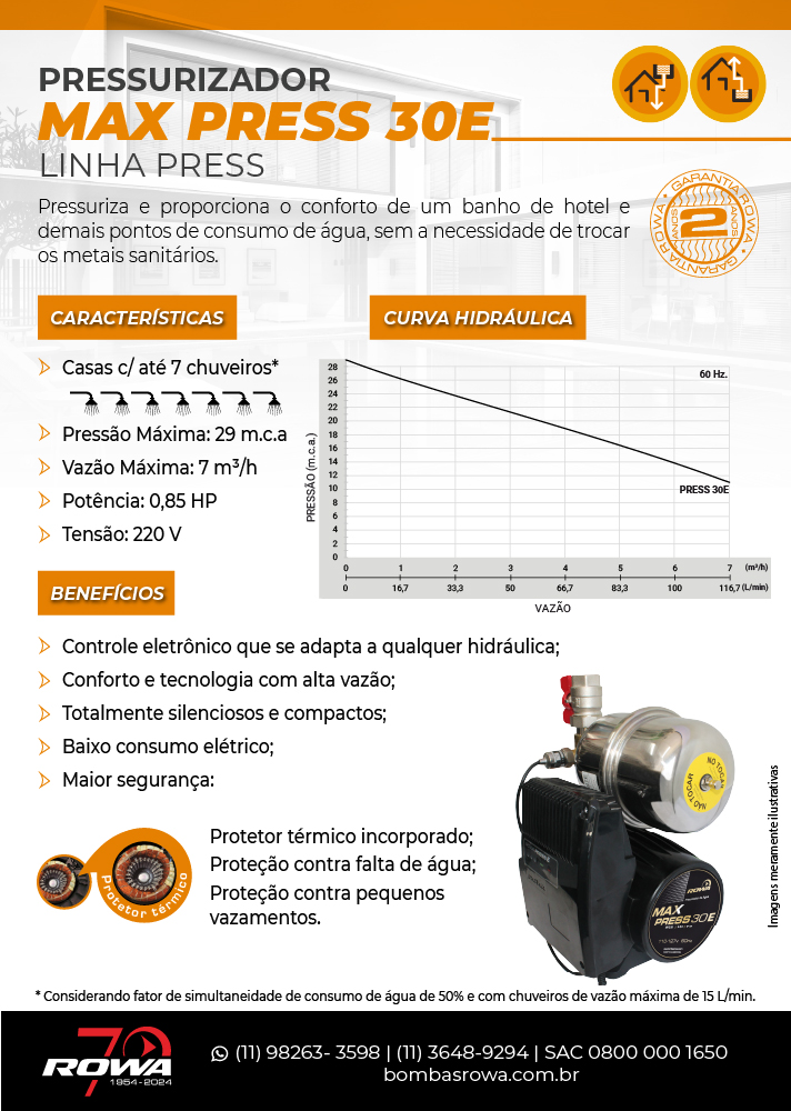 Com tecnologia avançada e controle eletrônico inteligente, elimina definitivamente os problemas de baixa pressão, ajustando-se automaticamente ao sistema hidráulico de cada instalação.