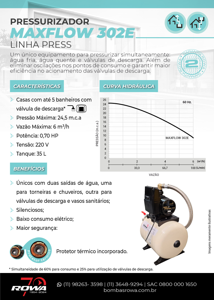 Com o Maxflow, você tem a certeza de estar investindo em tecnologia confiável, com a expertise da Rowa do Brasil, referência em pressurizadores e soluções hidráulicas inteligentes.