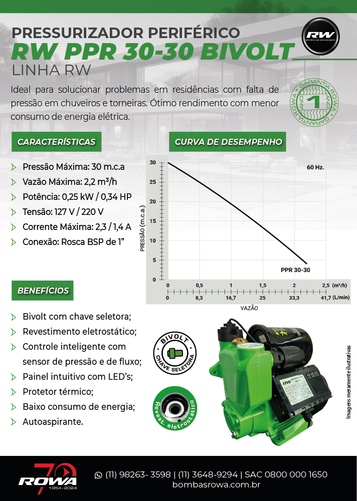 Com o PPR 30-30 da Rowa, sua casa ganha conforto e segurança, com a garantia de um pressurizador silencioso e eficiente.