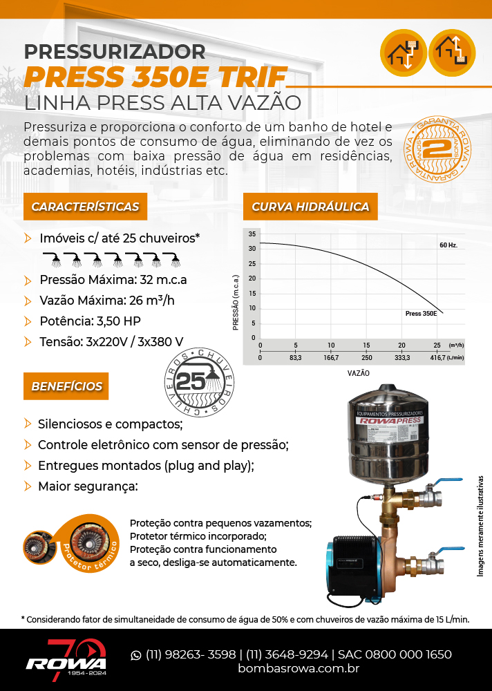Diferenciais e benefícios do Pressurizador de Alta Vazão Rowa: