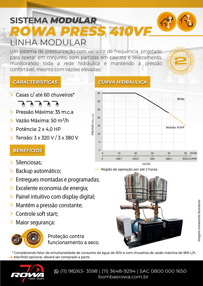 - Variador de Frequência (VF): Ajusta automaticamente a pressão da água para oferecer conforto em toda a rede hidráulica